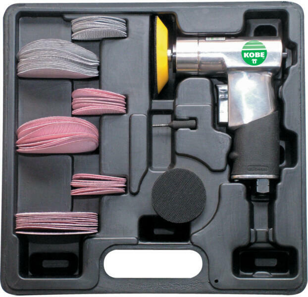 50mm (2) és 75mm (3) csiszolótányérok. Gumírozott markolat a kényelmes fogásért. Kétujjas fojtószelep szabályozó billentyű a könnyebb és kevésbé fárasztó működtetésárt. Állítható teljesítményszabályozó a megfelelő sebesség beállításához. Hosszú élettartamú csapágyazás. Tartozékok: 50mm (2) és 75mm (3) csiszolótányérok. 10 db 2 átm. csiszolótárcsa,