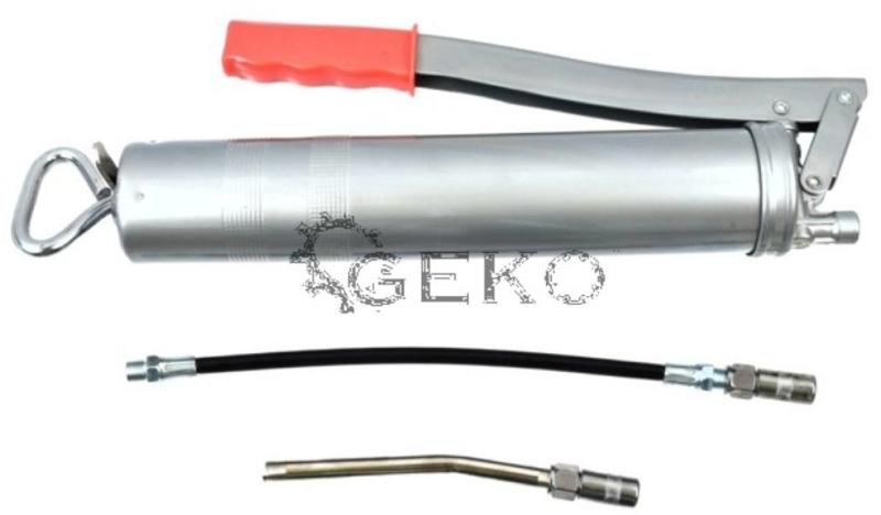 A termék leírása: A kézi karos eke a szilárd kenőanyagok pontos elosztására szolgál zsírzógombok vagy féknyergek segítségével a felületeken és mechanikai elemeken, például csapágyakon, csuklókon, csapokon, tengelyeken stb. A készlet tartalma : rugalmas tömlő , hajlított kenőcső , 2x 4 pofás kenőcsúcs A termék jellemzői: űrtartalma 500 ml kézi működtetésű dugat