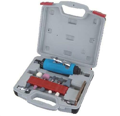 Tartalma: 1 db WFG-1310 1/4" furatköszörű, 2 db szerelő kulcs, 5 db 1/8" (3 mm) köszörűfej, 5 db 1/4" (6 mm) köszörűfej, 1 db 1/8" (3 mm) befogó hüvely, 1 db dugó, 1 db műanyag koffer A furatköszörű műszaki jellemzői: Hátsó használt levegő elvezetés. Fordulatszám: 22000 RPM Átlagos levegőfogyasztás: 300 l/perc Üzemi nyomás: 6,3 bar Levegő bemenet: 1/4" Befogási mér
