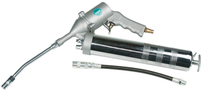 Levegős zsírzókészlet FPS PRO - A kereskedelemben szokásos 400-g DIN-tömítőkhöz vagy közvetlen töltéshez is alkalmazható - manuális kivitel: zsírvezetés mindig a ravasz működtetésén keresztül történik - Fúvókacsővel, hajlékony tömlővel, hidraulikacsatlakozóval Levegőszükséglet 0,4 l/zsírzás Nyomásszükséglet 2 - 8 bar Súly1,5 kg Nyomás áttétel 1 : 40 -Kivá