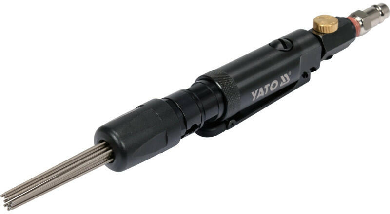 Pneumatikus mini tűs rozsdaleverő, kompakt méret lehetővé teszi a precíz munkát. Mini tűkalapács rozsda, hegesztési varratok és lemezmunkák tisztítására. A kompakt méret lehetővé teszi a precíz munkát. A szabályozószelep lehetővé teszi a csapások gyakoriságának beállítását. A légkiáramlás irányának állítási lehetősége növeli a felhasználó kényelmét. Ha