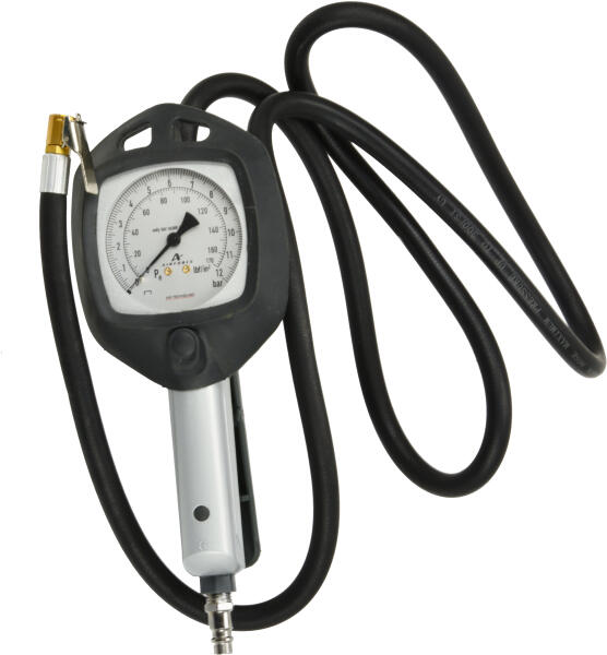 Geko profi kerékfújó pisztoly manométerrel, motorkerékpárok, személygépkocsik és teherautók kerekeinek felfújásához. Nagyméretű, jól olvasható gumibetétbe ágyazott manométerrel szerelve. \n \n \n A termék jellemzői \n \n nagy könnyen olvasható manométer \n 0 - 12 bar / 0 - 170 psi skálázás \n 180 cm hosszú tömlő \n légtelenítő gomb \n gumi betétbe ágyazott manom