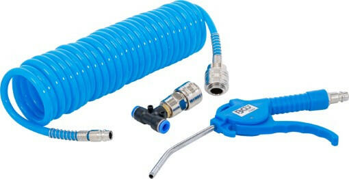 Leírás A munkaterület mélytisztításához és az alkatrészek kifújásához a nehezen hozzáférhető helyeken végzett portalanításhoz és tisztításához a járműben és a járművön A mellékelt T-csatlakozó használatával, részben alkalmas a teherautó ülés légrugózására a vezetőfülke belsejének tisztításához. 8 mm külső átmérőjű tömlőkhöz alkalmas T-csatlako