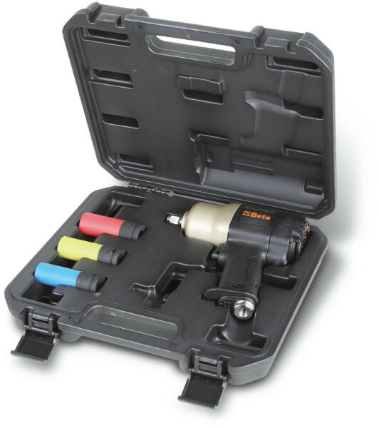 Irányváltós csavarbehajtó és három gépi dugókulcs készle Kétkalapácsos ütőmechanizmus Könnyű és kiegyensúlyozott a könnyű használhatóság érdekében Magas nyomatékkal rendelkezik 1 020 Nm Karos irányváltó Három különböző teljesítményű csavarbehajtás Levegő kieresztés a markolaton keresztül Hangtompítós Beta 720LC dugókulcsfej 17-19-21 mm Beta 1927CD légkul