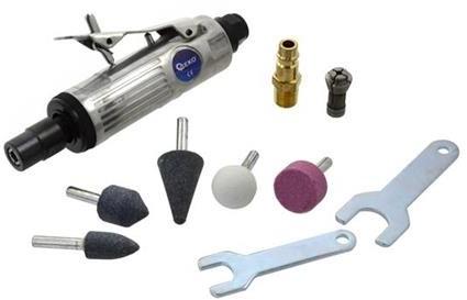Pneumatikus csiszoló készlet. A termék jellemzői: speciális kapcsoló kar kompakt és könnyű a kényelmes használat érdekében Műszaki adatok: maximális fordulatszám: 25.000 fordulat / perc üzemi nyomás: 6,3 bar levegőfogyasztás üzemi nyomáson: 98 liter / perc levegőcsatlakozási méret: 1/4″ légtömlő mérete: 3/8″ teljes hossz: 145 mm A készlet tartalma: 1 db pneumatiku