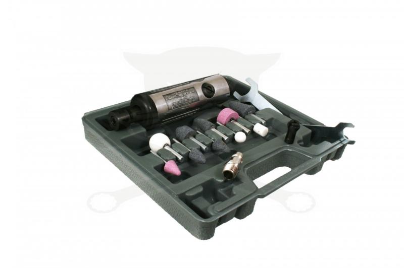 Ez a polírozó (turbómaró) különféle csiszolóköveket tartalmaz, mellyel kiválóan használható finom csiszolási és polírozási műveletekhez. A készlet tartalma: 1db mini csiszoló: 6mm (1/4"). Hossz: 175mm 2db kulcs 1db szűkítő tokmány: 3mm (1/8") 5db csapos csiszolókő 6mm-es (1/4") szárral 5db csapos csiszolókő 3mm-es (1/8") szárral 1db levegőcsatlakozó dugó terhelés