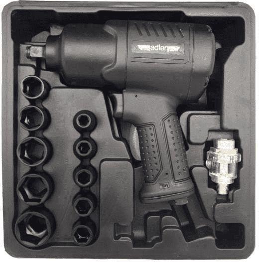 A készlet neve: AD-1907-Z10 Termékszám: MA1907-Z10 Orsó átmérő: 1/2 " Maximális nyomaték: 1590 Nm Fordulatok száma: 7500 ford / perc Fogaskerekek száma (lazítás / csavarozás): 1/3 Átlagos levegőfogyasztás: 184 l / perc Aljzatok: 9, 10, 11, 13, 14, 17, 19, 22, 24, 27 mm Maximális üzemi nyomás 6,3 bar Beállított súly: 4,1 kg