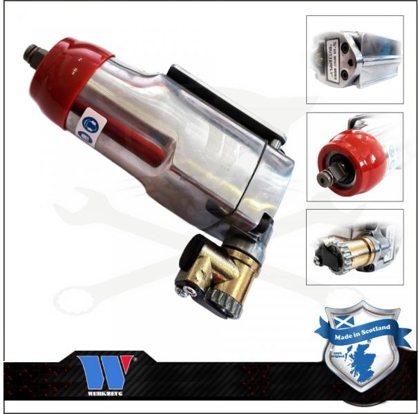 Welzh-Werkzeug Skót ipari minőségű Mini "pillangó" kinézetű légkulcs 3/8"-os csatlakozási mérettel egy kézzel megfordítható a forgás iránya. Tulajdonságok: - Csavarkapacitás: 10 mm - Szabad sebesség: 11000 fordulat / perc - Maximális nyomaték: 135 mm - Hosszúság: 160 mm Egy kézzel előre- és hátra állítható Súly: 900 kg