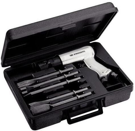 FACOM Rövid légkalapács készlet kofferben Jellemzők: A rövid cső ideális a panelek vágásához, festékeltávolításhoz és hegesztési pontok eltávolításához. A gyorscseretartó megkönnyíti a tartozékok cseréjét. Az elülső és hátsó uretán lengéscsillapítók alacsonyan tartják a rezgéseket a kényelmes használat érdekében. Változtatható sebességű kioldó a kivá