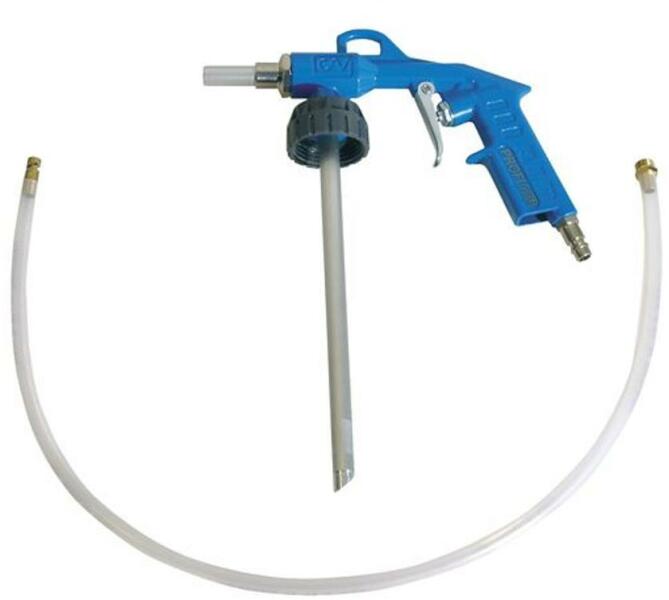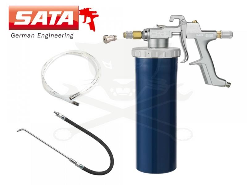 SATA - Made in Germany SATA gyártmányú professzionális alvázvédő pisztoly 1,5 literes tartállyal, anyag szabályozóval. Tartozék: - 1 db gyorscsatlakozós szóró rövid fej - 1 db 7 mm-es méretű ventúri fém szonda flexibilis gumi tömlővel gyorscsatlakozóval - 1 db 8 mm-es 360 fokban körbeforgó szonda 1300 mm-es flexibilis csővel gyorscsatlakozóval