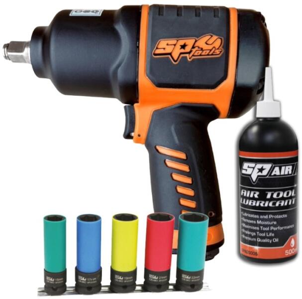 SP Tools - Made in Japan Egyedi karácsonyi összeállítás: - 1 db SP Tools extra erős 1800 Nm-es 1/2"-os Japánban gyártott professzionális légkulcs (SP9840) - 5 db P Tools színes műanyag védőborítással ellátott vékonyított gépi 6 lapú 1/2"-os hosszított dugófejek aluminium felni szerelésekhez (SP20390) Méretek: 15 - 17 - 19 - 21 - 22 mm (Ayyaga: Chrome - Molybdenium acél) -