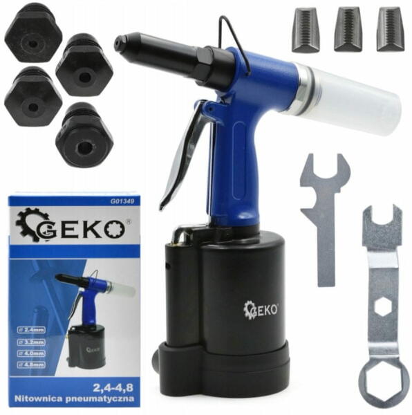 Nagyon magas színvonalú pneumatikus szerszám szegecseléshez. Megkönnyíti a fémlemezzel dolgozó munkások, asztalosok, szerelők és barkácsolók munkáját. Ez egy teljesen professzionális eszköz. Műszaki adatok: súlya: 1,6 kg Szegecs átmérők: 3,2 mm (1/8") acél, alumínium, rozsdamentes acél, 4,0 mm (5/32") acél, alumínium, rozsdamentes acél, 4,8 mm (3/16") acél, alumínium,