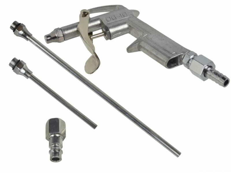 A termék leírása: A fúvópisztoly szükséges eszköz minden professzionális műhelyben és otthoni garázsban. A pisztoly kényelmes, könnyű és praktikus. A pisztoly ideális a szennyeződések eltávolítására a zugokból, a rosszul hozzáférhető lyukakból, valamint a víz kifújásához a résekből. A termék jellemzői: ajánlott üzemi nyomás 10 bar -ig maximális üzemi nyomá
