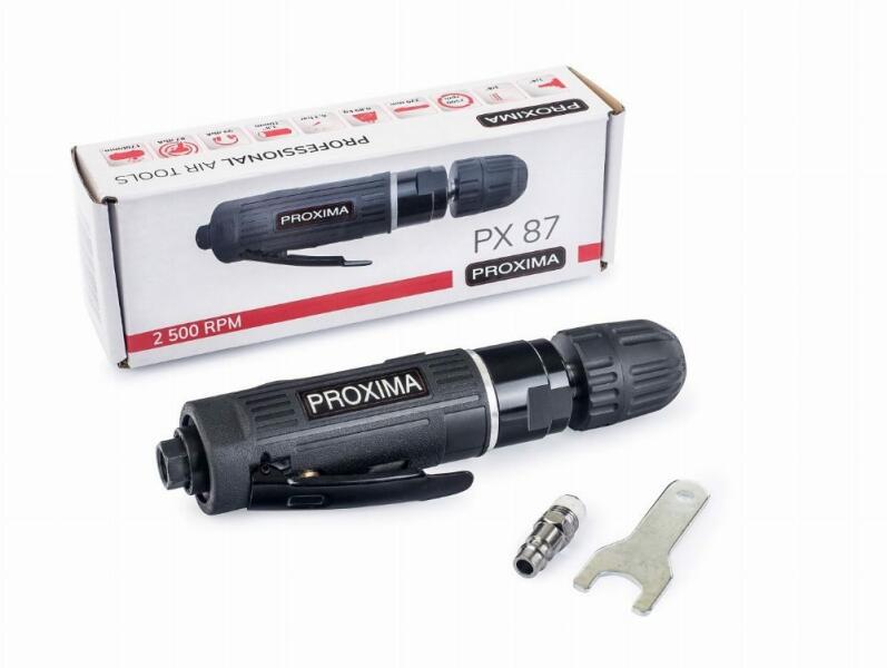 Előnyök: Köszörülés nehezen elérhető helyeken 6 mm-es és 3 mm-es szárral kompatibilis Alkalmazások széles skálája (csiszolás, sorjázás, polírozás) 24 hónap garancia. Műszaki adatok: Fordulatszám: 20 000 / perc Levegőigény: 85 L/perc Szár foglalat: 6mm vagy 3mm Súly: 0,55 kg