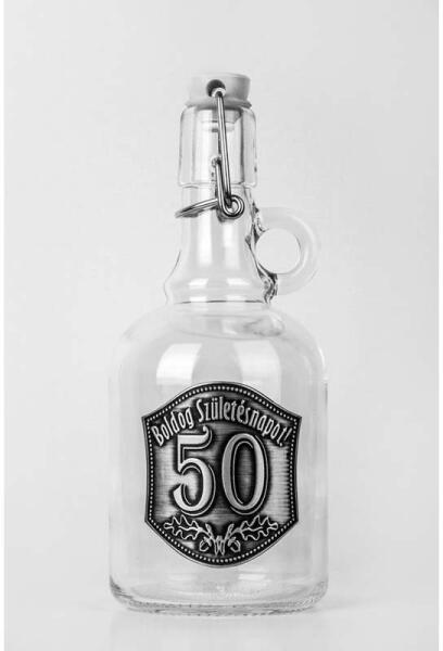 Csatos üveg füles 0,5L Boldog Születésnapot 50 Termékjellemzők: Anyaga: üveg Alkalom: Szülinap Kinek ajánlott: