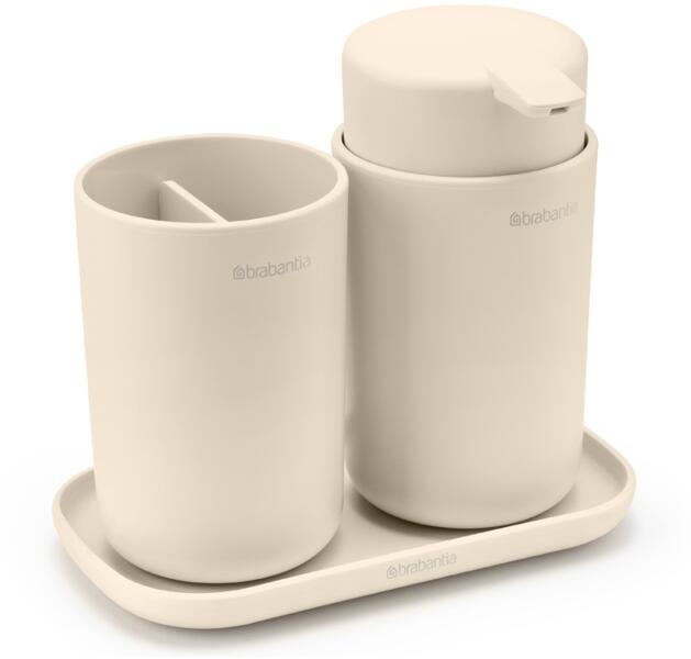 Tartsa fürdőszobáját és WC-jét a legjobb állapotban, hogy a látogatás után a legjobb formában legyen! A fürdőszobai és WC-kiegészítők Brabantia RENEW segítenek ebben. szett szappanadagolóval, fogkefetartóval és tárolórekesszel a tartóban több fogkefe és egy tubus fogkrém vagy 2 elektromos fogkefe is elfér szappanadagoló nagy töltőnyílással és 250 ml-es csepegésme