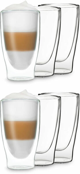 A Feelino by Klarstein luxus DUOS pohár kézzel készült, és elegáns dizájnjával gazdagítja lakókörnyezetét. A dupla üvegréteg a hideg italokat tovább tartja hidegen, a forró italokat pedig tovább forrón. Ez a vonzó pohár eszpresszóhoz, teához, röviditalokhoz, aperitifekhez vagy desszertekhez boroszilikát üvegből készült, rendkívül tartós és hőálló: karcálló, nag