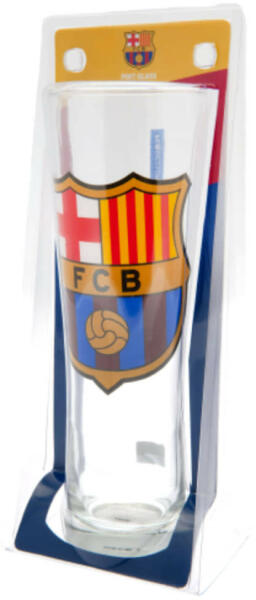 FC Barcelona söröspohár, színes címerrel. 570 ml, 24 cm magas. Mosogatógépben nem mosható. Ez a magas, karcsú, pilsner típusú FC Barcelona söröskorsó tökéletes kiegészítője lehet minden futballrajongó készletének. FC Barcelona klubcímerrel az elején. A korsó hátulján egy kis kék blokkon fehér FCB felirat található, ami elegáns megjelenést kölcsönöz neki. Az FC B