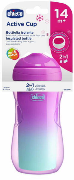 A Chicco Active termo bögre ideális a természetes iváshoz és az utazáshoz. Tulajdonságok: ergonomikus forma az alsó ajak támasztásával és orr mélyedéssel a felső részen kemény formázott szájnyílás, ellenáll a harapásnak keskeny formázott szájnyílás, ami utánozza a pohár szélét, segíti a gyermeket az áttérésben a nyitott pohárból való ivásra a bögre dupla szi