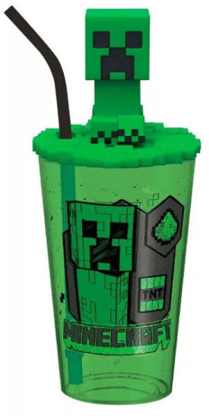 Minecraft műanyag 3D szívószálas pohár Anyaga: műanyag Űrtartalom: 443 ml Nem mikrózható. Mosogatógépben nem használható.