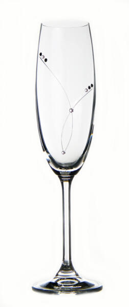 Modern pezsgős kristály pohár (kehely) kézi csiszolással és 8 db Swarovski ( vagy Preciosa ) kővel díszítve. 220 ml. A termék kitűnően alkalmas ajándékozásra is, mint például esküvői ajándék, évfordulós ajándék, szülinapi ajándék vagy akár céges ajándék. A dekort a Black Crystal munkatársai kézzel készítették, Ajkán.