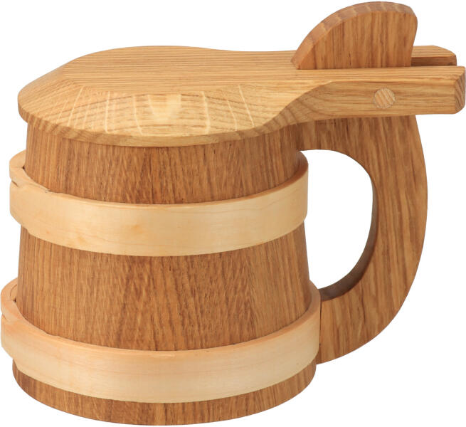 A tölgyfából készült fedeles fakorsó kézzel készült, hagyományos asztalosmunkát ígényelve. Az eredeti megjelenés és a minőség miatt ideális ajándék ötlet. Ez a söröskorsó a sörivók kedvenc ajándéka lesz. Ez egy abszolút stílusos darab, amely nagyon kifinomult és kézzel megmunkált kézimunka is egyben. Kérésre lehetőség van név, kép vagy felirat gravírozásá