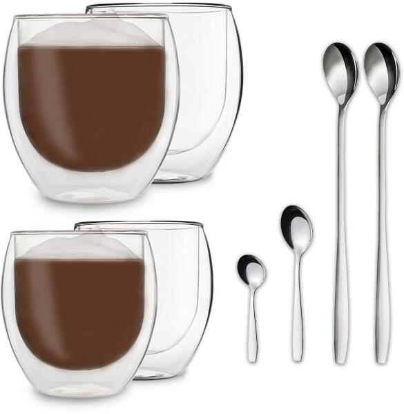 A Feelino by Klarstein luxus DUOS Jumbopohár kézzel készült, és elegáns dizájnjával gazdagítja lakókörnyezetét. A dupla üvegréteg a hideg italokat tovább tartja hidegen, a forró italokat pedig tovább forrón. Ez a vonzó pohár eszpresszóhoz, teához, röviditalokhoz, aperitifekhez vagy desszertekhez boroszilikát üvegből készült, rendkívül tartós és hőálló: karcálló