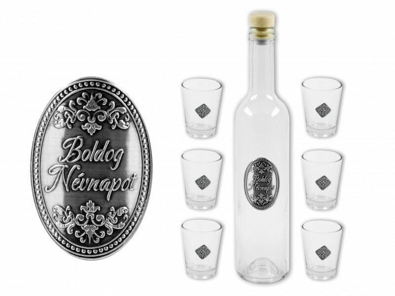 Palack 6db pálinkás pohár fémcímkés Boldog Névnapot PK/HP6pál - Óncímkés Pálinkás készlet Befoglaló méretek 13x6x38 cmAnyaga üveg