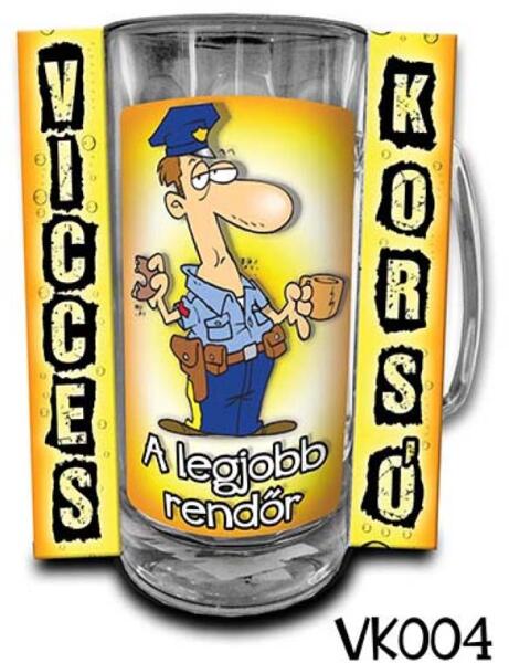 Vicces Korsó 0,3 L - A legjobb rendőr Vicces korsó, söröskorsó vicces feliratokkal. Ebből a korsóból minden sör finomabb és jobban fog esni. Sörimádók garantáltan örülnek majd egy ilyen ajándéknak. Ajándék ötlet férfiaknak születésnapra, névnapra és bármilyen alkalomra nagyon jó és ötletes ajándék. Űrtartalma: 0.3 LA kép illusztráció!A megvásárolt termék a s