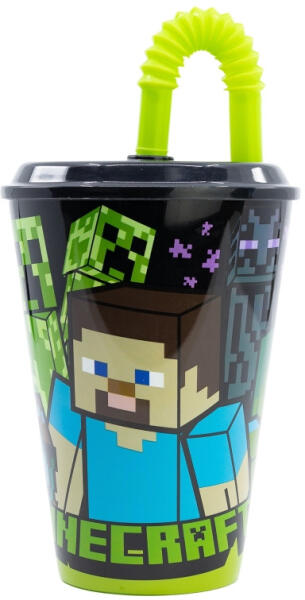 Minecraft műanyag szívószálas pohár 430 ml Zárható tetővel Nem mikrózható. Mosogatógépben nem használható BPA Mentes Űrtartalom: 430 ml Anyaga: műanyag