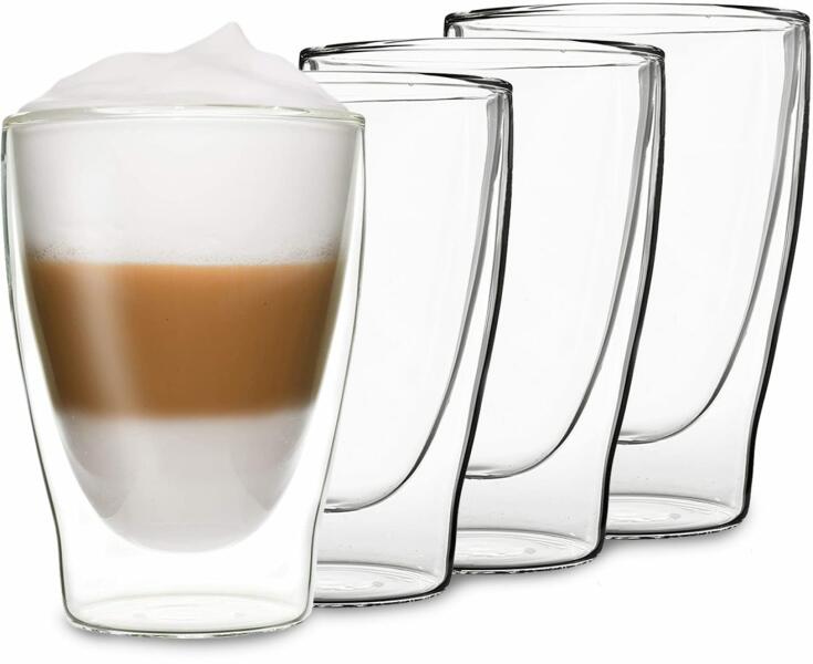 A Feelino by Klarstein luxus DUOS pohár kézzel készült, és elegáns dizájnjával gazdagítja lakókörnyezetét. A dupla üvegréteg a hideg italokat tovább tartja hidegen, a forró italokat pedig tovább forrón. Ez a vonzó pohár eszpresszóhoz, teához, röviditalokhoz, aperitifekhez vagy desszertekhez boroszilikát üvegből készült, rendkívül tartós és hőálló: karcálló, nag