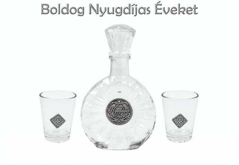 Óncímkés Pálinkás készlet 0,2l palack 2 pohár Boldog Nyugdíjas Éveket - Óncímkés Pálinkás készlet Ez a pálinkás készlet tökéletes választás azok számára, akik egyedi és személyre szabott ajándékot keresnek a nyugdíjas éveket betöltött ismerőseiknek, barátaiknak, rokonaiknak. A készlet tartalmaz egy 0.2 literes pálinkás palackot és két poharat, mindegyiket egy