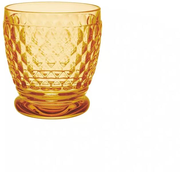 Sáfránysárga kristályüveg whiskys pohár A Villeroy & Boch Boston sorozata mára eggyé vált a márka DNS-ével és szinte megkerülhetetlen tagja lett a világhírű német gyártó kristályüveg szortimentjének. A Boston különleges ismeretőjele a minőségi alapanyagon túl a kollekcióra jellemző kehely szerű poharak sokasága, valamint a luxus érzetét keltő fazellált felü