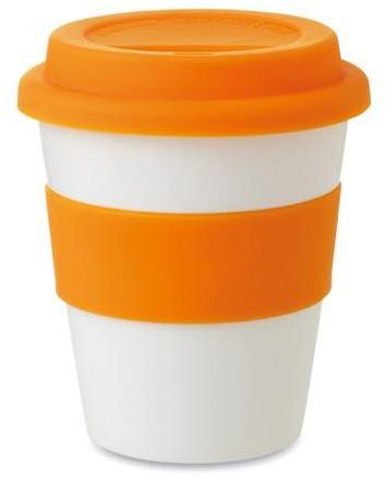 Szimplafalú pohár fényes fehér PP anyagból. Szilikon tető és markolat. Űrtartalom: 350 ml. Mivel ez egy szimplafalú bögre, hőátadás lehetséges. Termék színe: narancssárga