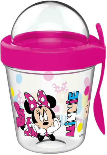 Disney Minnie pohár snack tartó fedéllel és kanállal 350 ml BPA mentes Nem mikrózható. Mosogatógépben nem használható. Anyaga: műanyag Űrtartalom: 350 ml Pohár, melybe gyümölcsöt vagy bármi egyéb finomságot tehetsz.