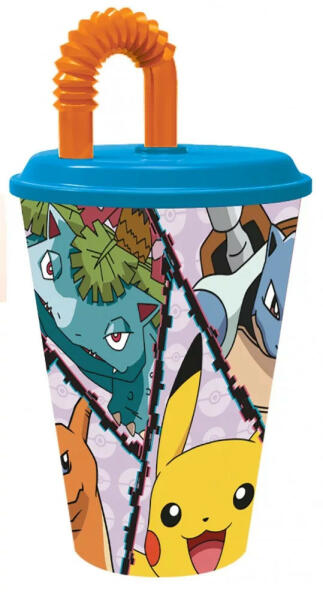 Pokémon Szívószálas pohár 430 ml. Zárható tetővel. Nem mikrózható. Mosogatógépben nem használható. -BPA Mentes Anyaga: műanyag