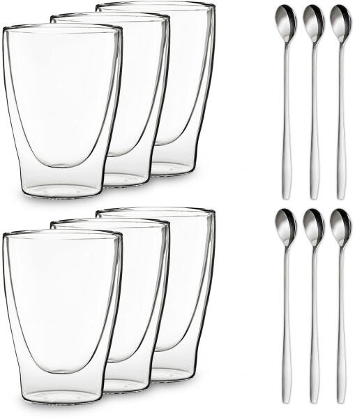 Luigi Bormioli duplafalú boroszilikát üveg kézzel készített elviseli a hirtelen erős hőmérséklet változásokat mikrohullámú sütőben használható mosogatógépben mosható Hamisítatlanul megőrzi az italok ízét és aromáját. Megakadályozza a páralecsapódást a külső felületen.