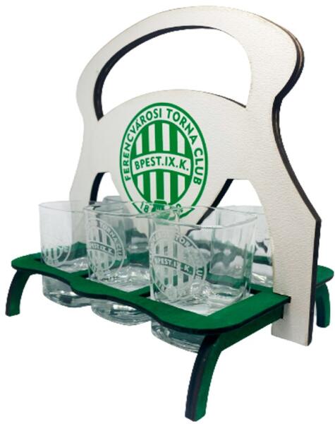 Fejezze ki a Ferencvárosi TC iránti szeretetét ezzel a lenyűgöző Fradi bélyegzős pohárkészlettel! A zöld színű, poliészterből készült poharak kiválóan alkalmasak pálinka kínálására, legyen szó házibuliról, kerti partiról vagy baráti összejövetelekről. A készlet 6 darab 4 cl űrtartalmú poharat tartalmaz, melyek egy elegáns, gravírozott fa tartóban kapnak helyet