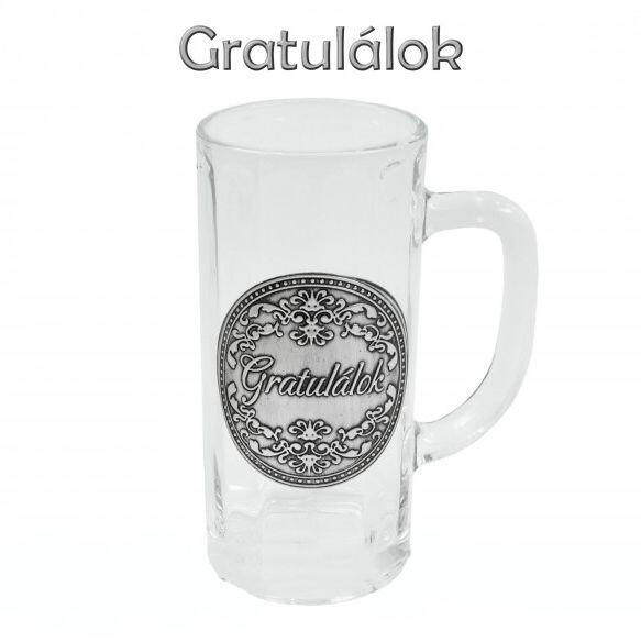 Óncímkés Söröskorsó 0,3l Gratulálok fémcímkés - Óncímkés Söröskorsó Óncimkés üveg korsó 0,3lBefoglaló méretek 11x6.5x15 cmAnyaga üveg, fém
