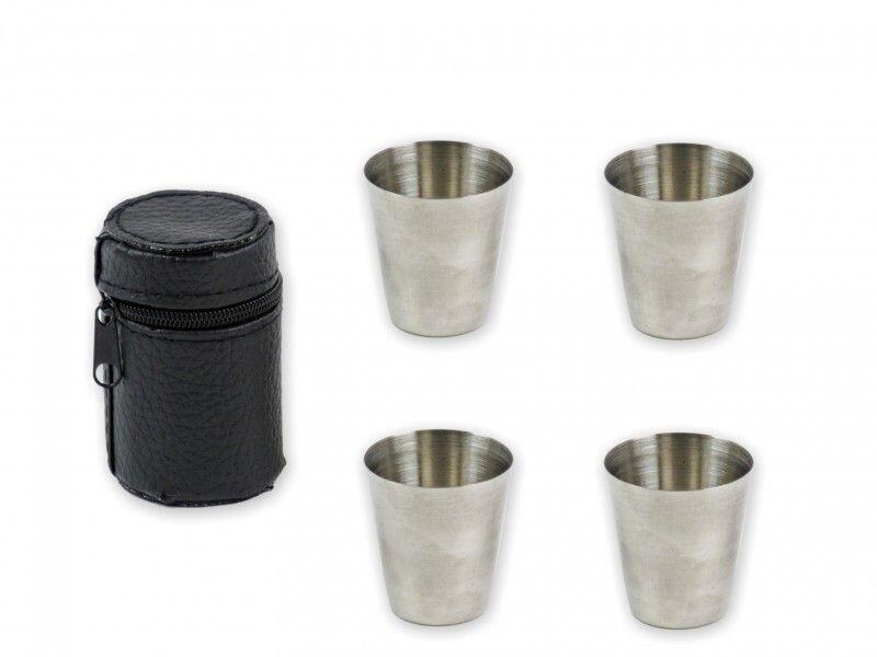 Fém feles pohár tartóval 4db 2cl 01231 Praktikus és férfias ajándékA szett tartalmaz 4 db, 2cl-es fém feles poharat és 1 db fekete bőr tartót. Kis méretéből adódóan elfér egy hátizsákban, kiránduláskor csak előveszed és már ihatod is a szívmelegítőtBefoglaló méretek 4x4x7 cmAnyaga fém, műbőr
