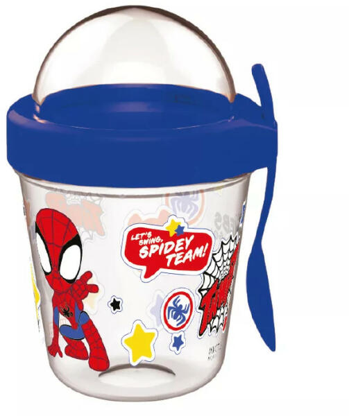 Spiderman, Pókember Spidey pohár snack tartó fedéllel és kanállal 350 ml BPA mentes Nem mikrózható. Mosogatógépben nem használható. Anyaga: műanyag Űrtartalom: 350 ml Pohár, melybe gyümölcsöt vagy bármi egyéb finomságot tehetsz bele.