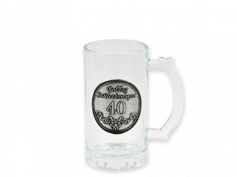 Söröskorsó fémcimkés Boldog 40. Születésnapot 4dl 04670 - Óncímkés Söröskorsó Befoglaló méretek 13x8x15 cmAnyaga üveg