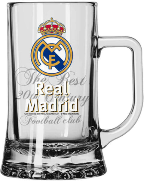 Légy a legnagyobb Real Madrid rajongó a baráti összejövetelek alkalmával ezzel a címeres söröskorsóval! Kicsi, de annál határozottabb, ez az üvegből készült korsó 2,8 dl folyadékot képes befogadni - tökéletes választás egy gyors sörözéshez, miközben a kedvenc csapatodért szurkolsz. Figyelem: a termék nem mosható mosogatógépben! Az eredeti Real Madrid logóval ellát