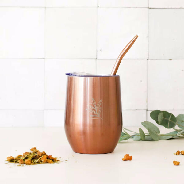 Ha egy stílusos és környezettudatos utazó vagy, akkor ez a pohár a neked való! Az Original Mate által gyártott utazó pohár rozsdamentes acélból készült, és 350 ml űrtartalmával tökéletesen alkalmas kávé, tea, vagy más üdítőitalok számára. Csillogó, bronz színével elég figyelemfelkeltő. Mindkét nem részére javasolt, unisex dizájn. A kupak átlátszó, BPA-mentes