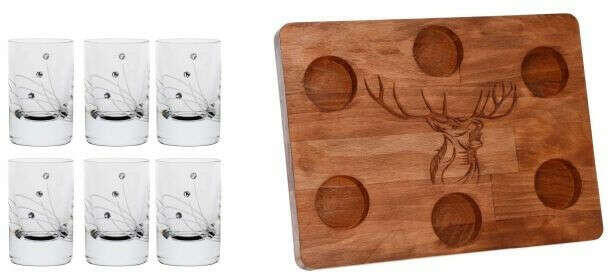 Pohár pálinkás, Swarovski dísszel, fa tálcával 30 ml S/6 Színe: átlátszó Anyaga: üveg Űrtartalma: 30ml 6db + tálca/készlet