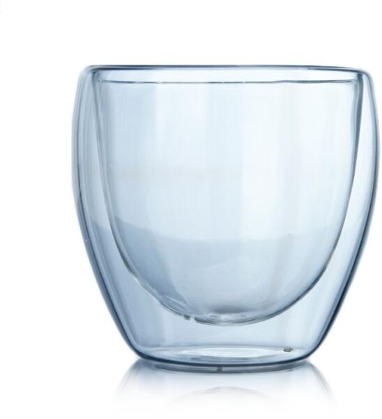 Design kávéscsésze dupla üvegből. A csészék szokatlan kialakítása biztosítja a hőszigetelést, így nem éget meg. Rendkívül tartós boroszilikát üveg!
