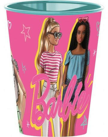 Barbie mintás pohár Anyaga: műanyag -BPA Mentes -Származási ország: Spanyolország -600 watton mikrózható max. 2 percig Űrtartalom: 260 ml .