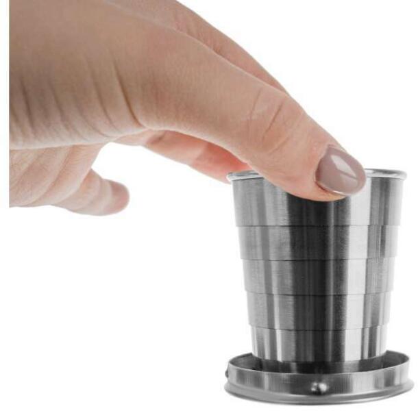Összecsukható, mini fémpohár és kulcstartó, pohár túrázáshoz