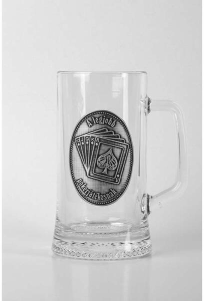 Korsó 0,33L – A legjobb pókerjátékosnak Ón címkével dekorált üveg korsó. Egyedi dombornyomott felirata megfelelően illeszkedik az igényekhez. A termék mosogató gépben és mikrohullámú sütőben nem használható. Tisztítása: kézi mosogatással Származási hely: Magyarország/EU Űrtartalom: 0,33L (A palack nem tartalmaz folyadékot) Termékjellemzők: Anyaga: üveg, fém Alk