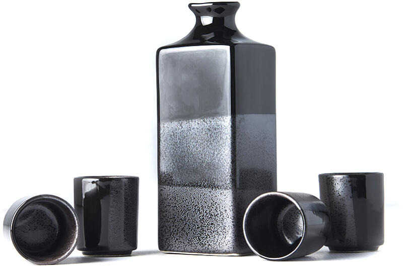 A szaké készlet a Gunmetal kollekcióból kézzel készült, kiváló minőségű kerámiából A szaké egy hagyományos japán alkoholos ital , amelyet ősi módon és modern technológiával készítenek. Az ital tényleges felszolgálása egy szertartás, amelynek során a szakét kis csészékbe töltik. Ez a készlet egy üveget és 4 szakécsészéttartalmaz, mindegyik más színű. Az ü